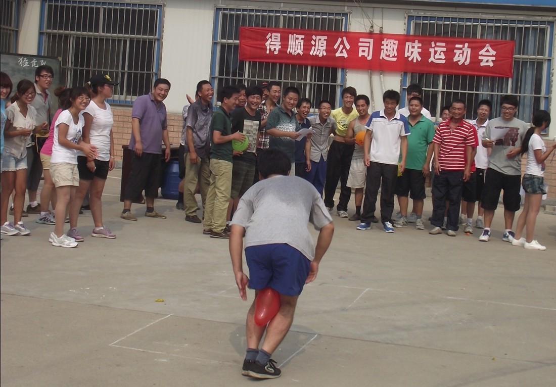 7月19日下午,得順源第一屆趣味運動會在得順源公司化工廠舉行。本次趣味運動會分兩隊進行較量,猛虎隊(由機關和研究所合成組成)VS飛虎隊(由化工廠和研究所質檢室組成)。兩隊各設置一名隊長,有各自的口號,各隊都對比賽充滿信心也充滿期待。