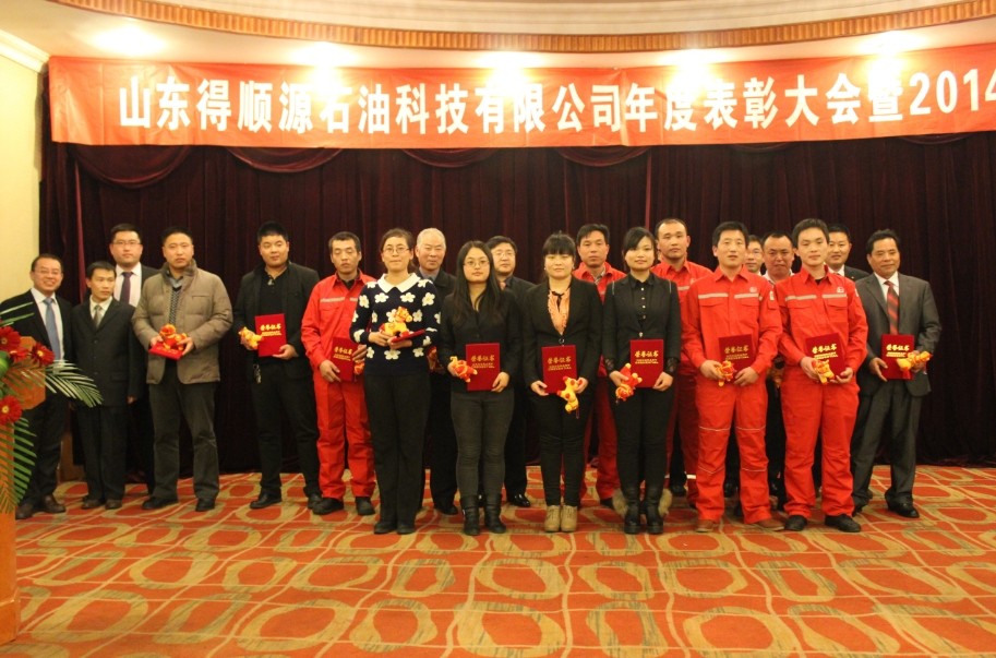 2014年1月23日,總經(jīng)理王樹永等公司高層領導,所有中層領導,化工廠,鉆井,研究所,機關各部室員工歡聚一堂,參加山東得順源石油科技有限公司2013年度總結(jié)暨表彰大會,會議由副總經(jīng)理孫衛(wèi)東主持。